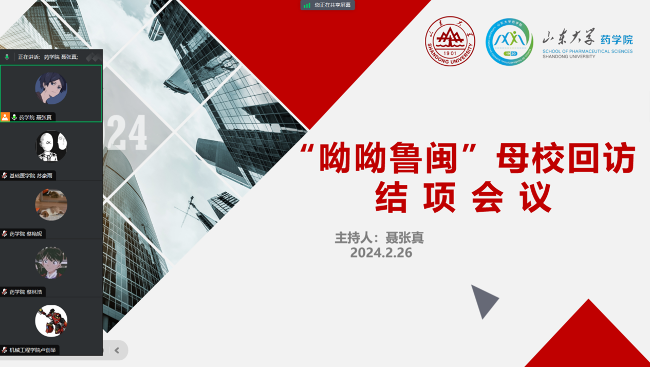为对队伍前期统筹以来的回访工作进行分析与总结,促进成长,2月26日晚,太阳成集团tyc234cc古天乐“呦呦鲁闽”母校回访队于线上召开了结项会议。本次会议由队长聂张真主持,全体队员参与。